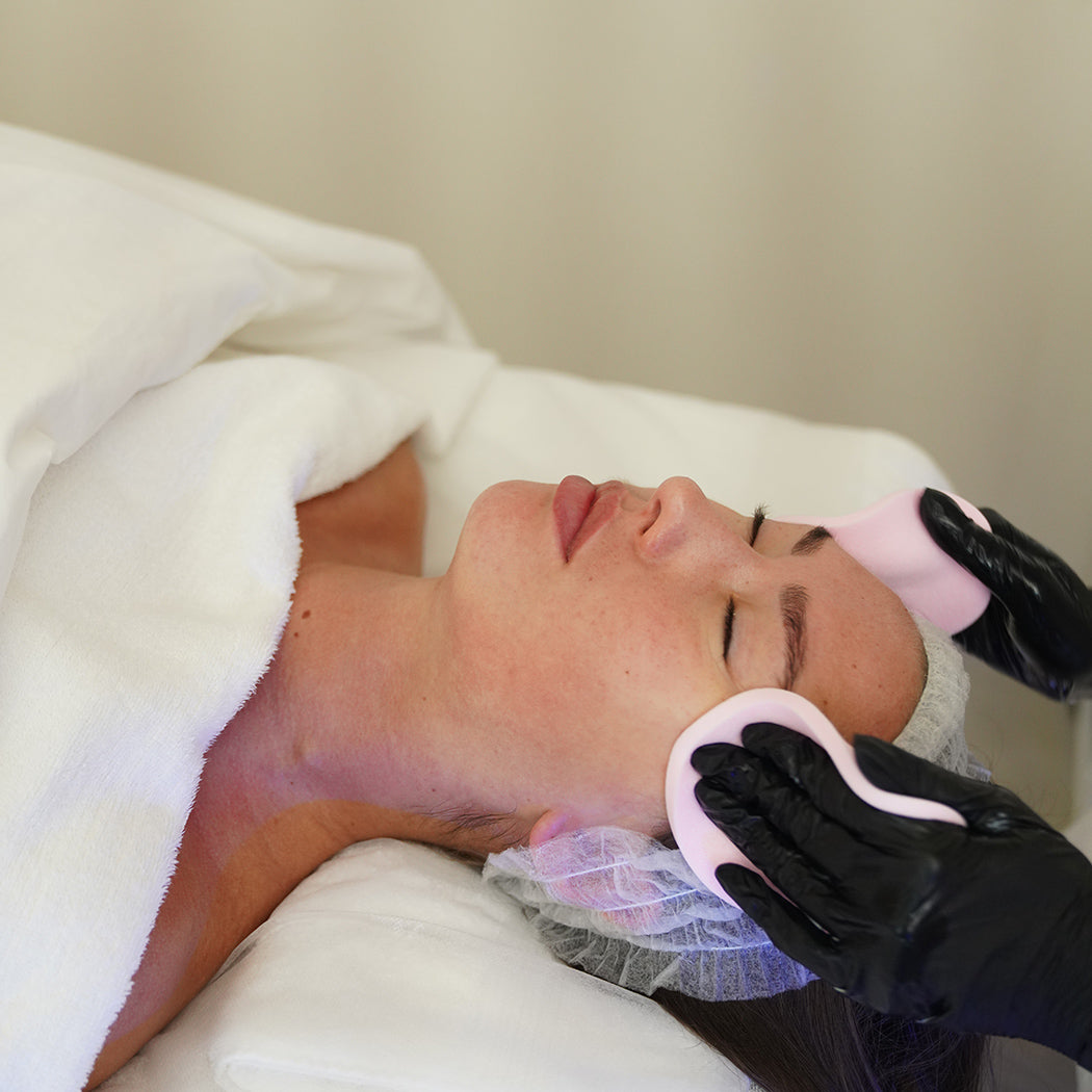 Our expert therapists will use light therapy to warm the skin, triggering fibroblasts stimulate collagen and elastin production. This natural healing response promotes healthy cell renewal, resulting in firmer, more supple skin with less lines and wrinkles. We can also use this collagen boosting technique to target melanocytes to reduce hyperpigmentation, or thread veins to address broken capillaries (rosacea).